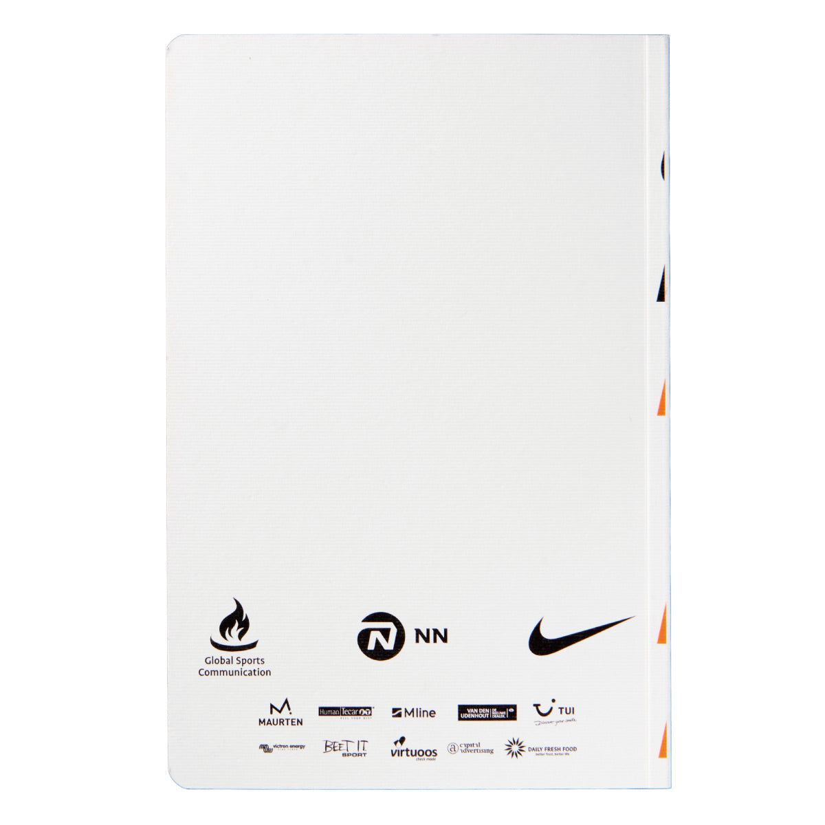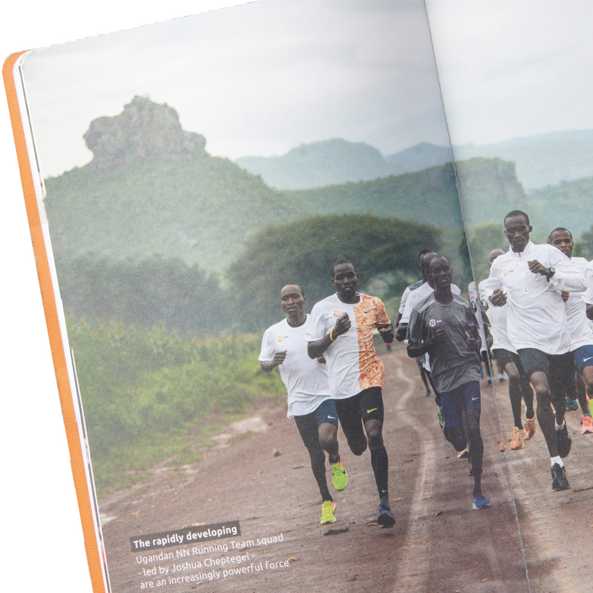 NNランニングチームに所属するトップランナーたちの写真やメッセージが随所に入ったオリジナルノートブックで、日々の成果を記録したり、トレーニングを計画したりするのに役立ちます。オレンジのスピン(紐のしおり)が付いています。
